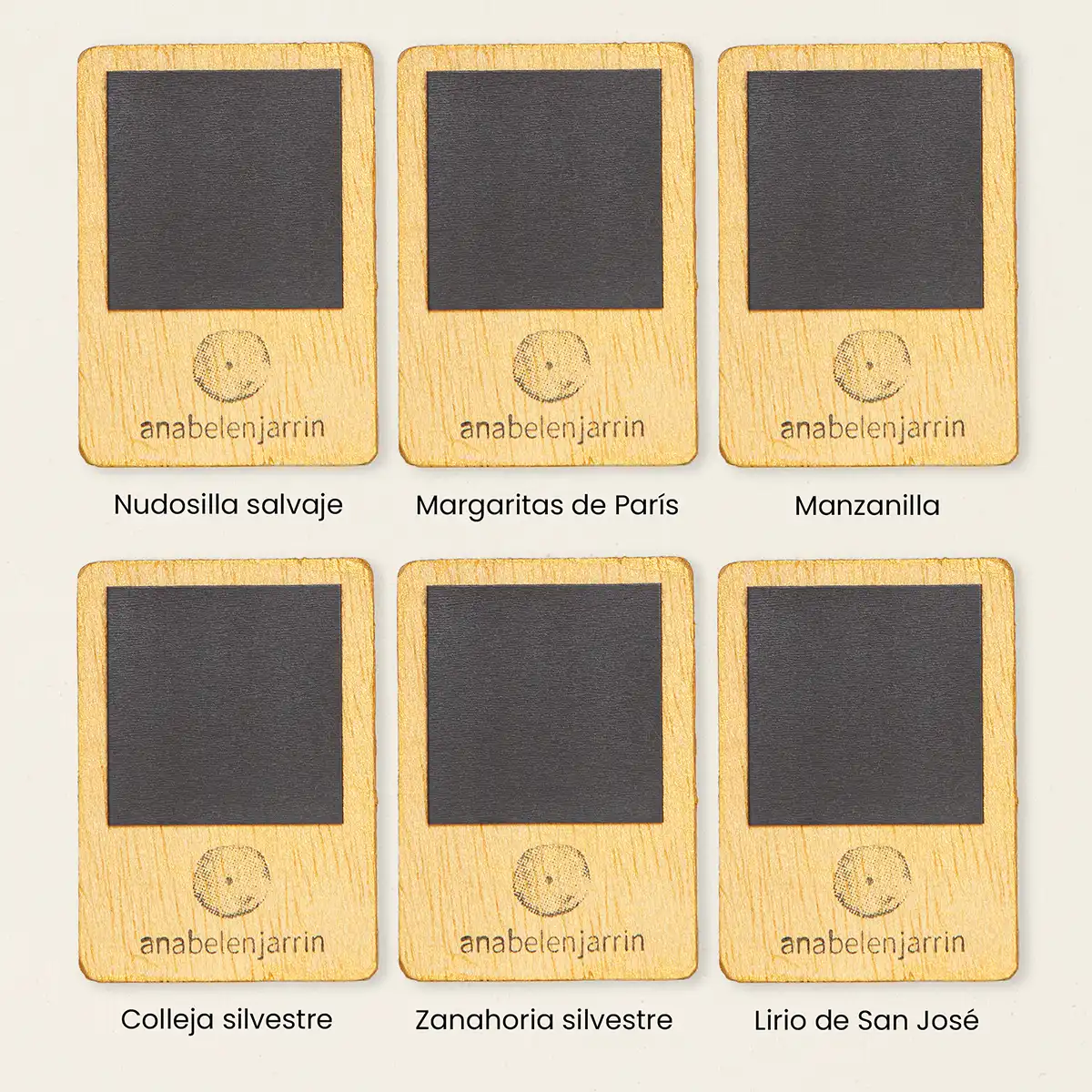 Imanes artesanos, lijados, sellados y finalizados a mano con un acabado en tonos dorados. Este tratamiento aporta a cada pieza una calidez particular y un carácter nostálgico estilo vintage.