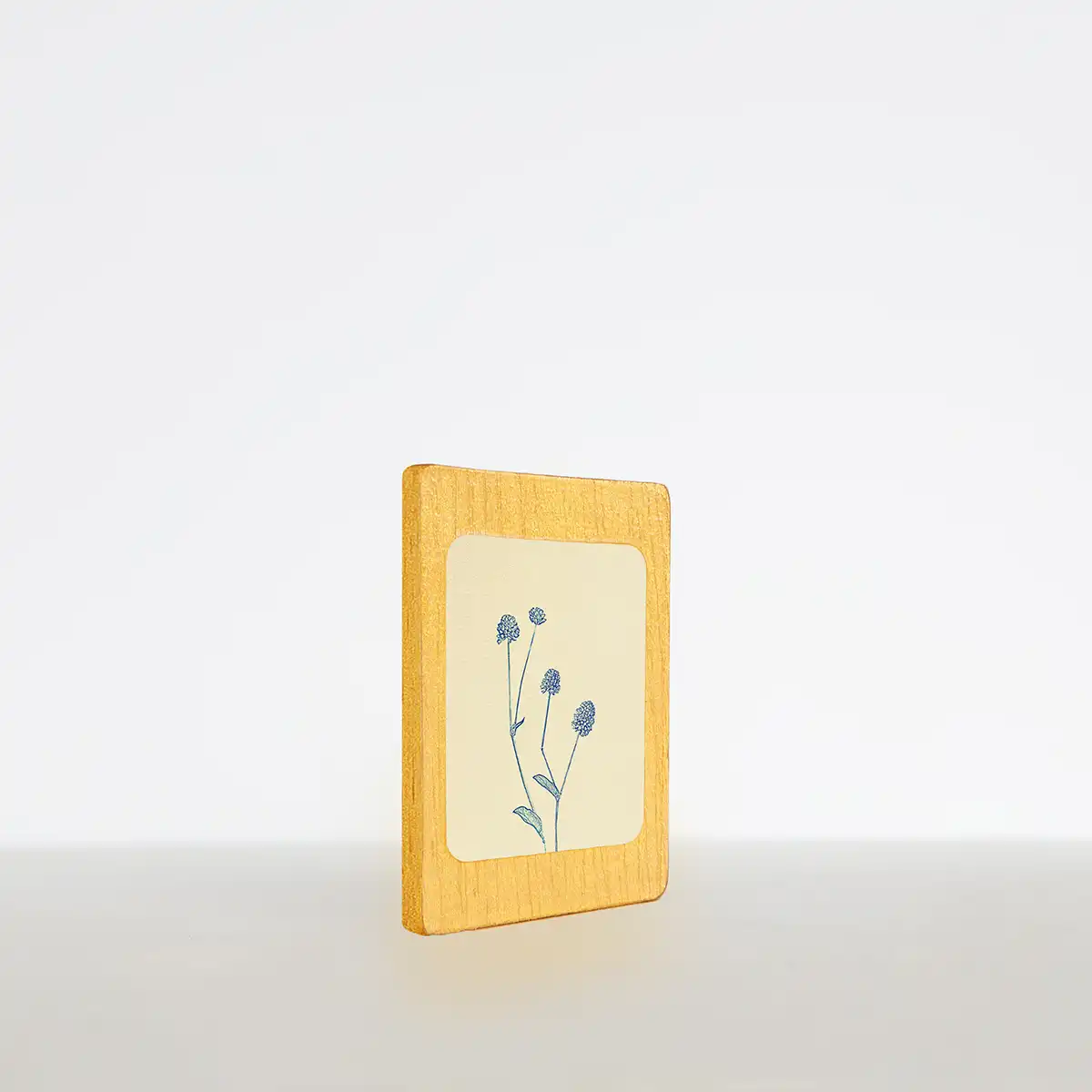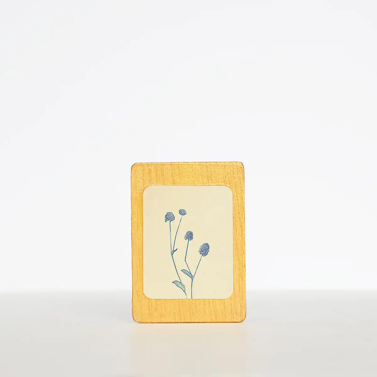 Este imán artesanal de composición botánica está hecho de forma artesanal, lijado, sellado y finalizado a mano con un acabado en tonos dorados. Este tratamiento aporta a cada pieza una calidez particular y un carácter nostálgico estilo vintage.