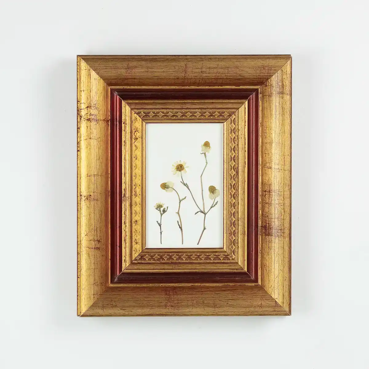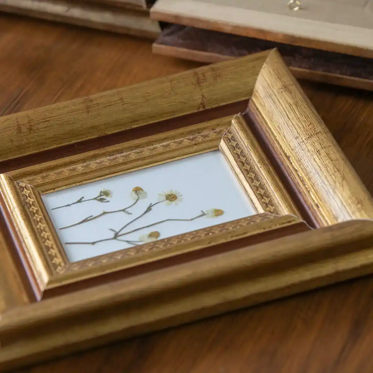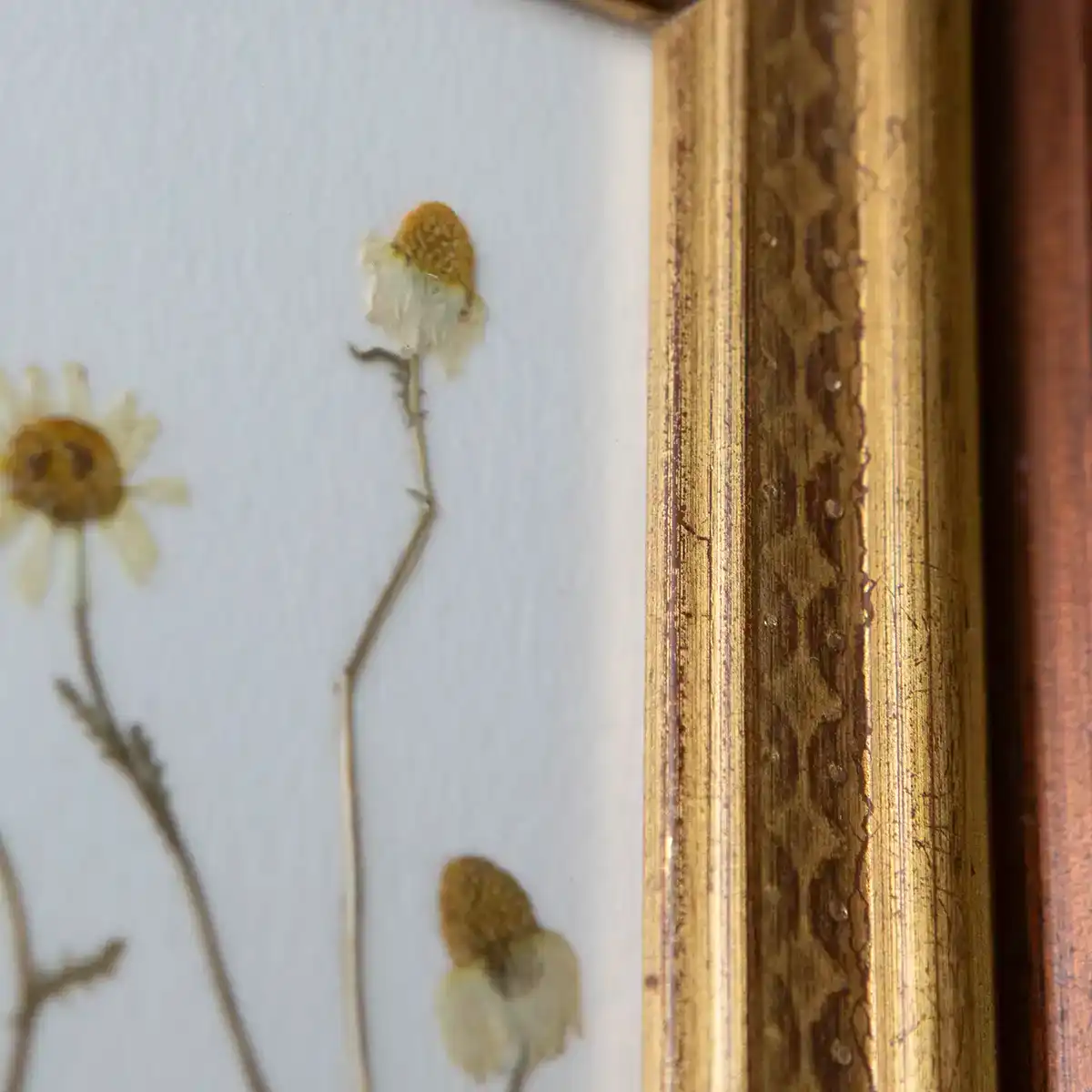 Margaritas prensadas en marco rústico