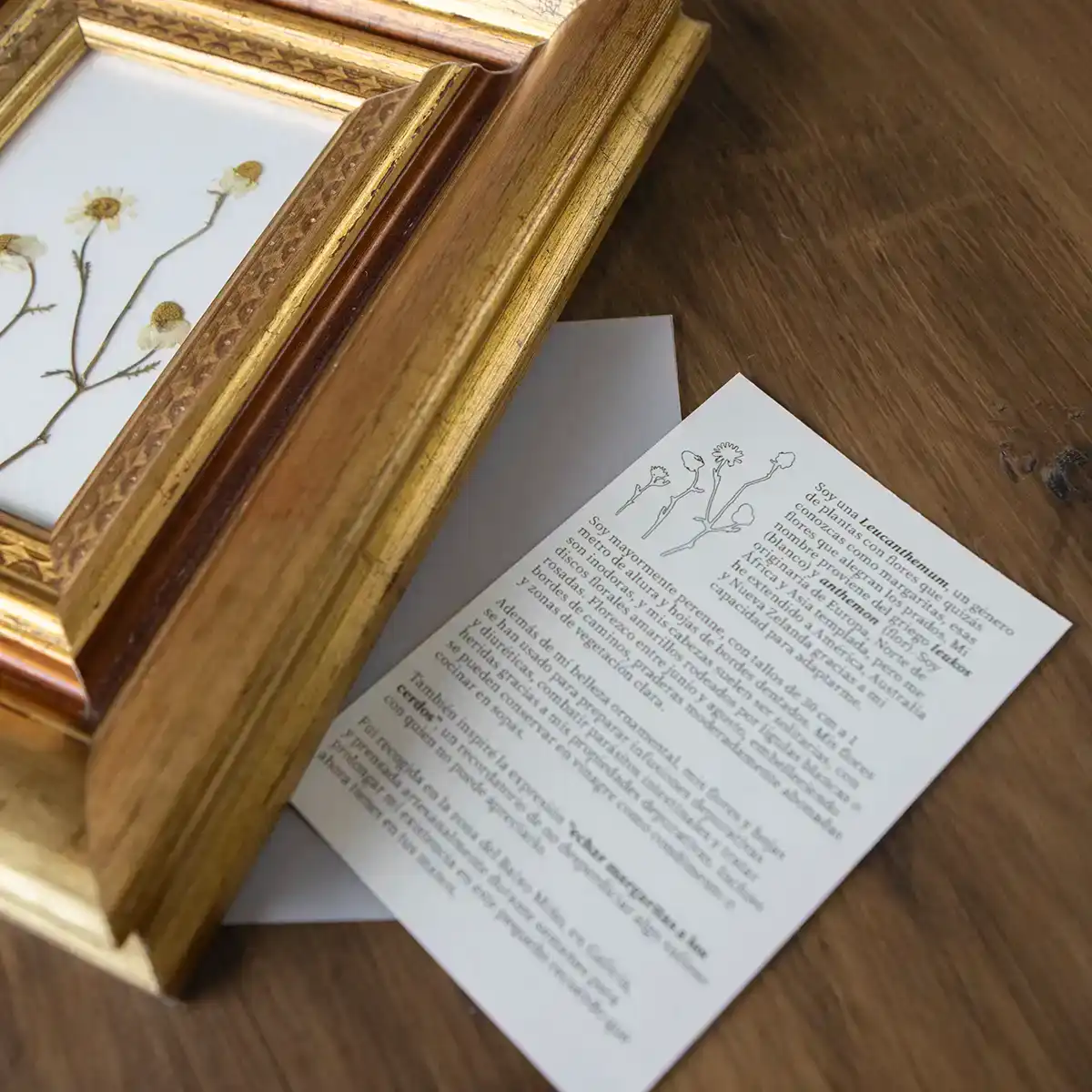 Cada flor es distinta, y al estar prensadas directamente del entorno, cada composición tiene una disposición única e irrepetible. Las margaritas, en su sencillez, capturan la fuerza de lo cotidiano y el encanto de lo mínimo.