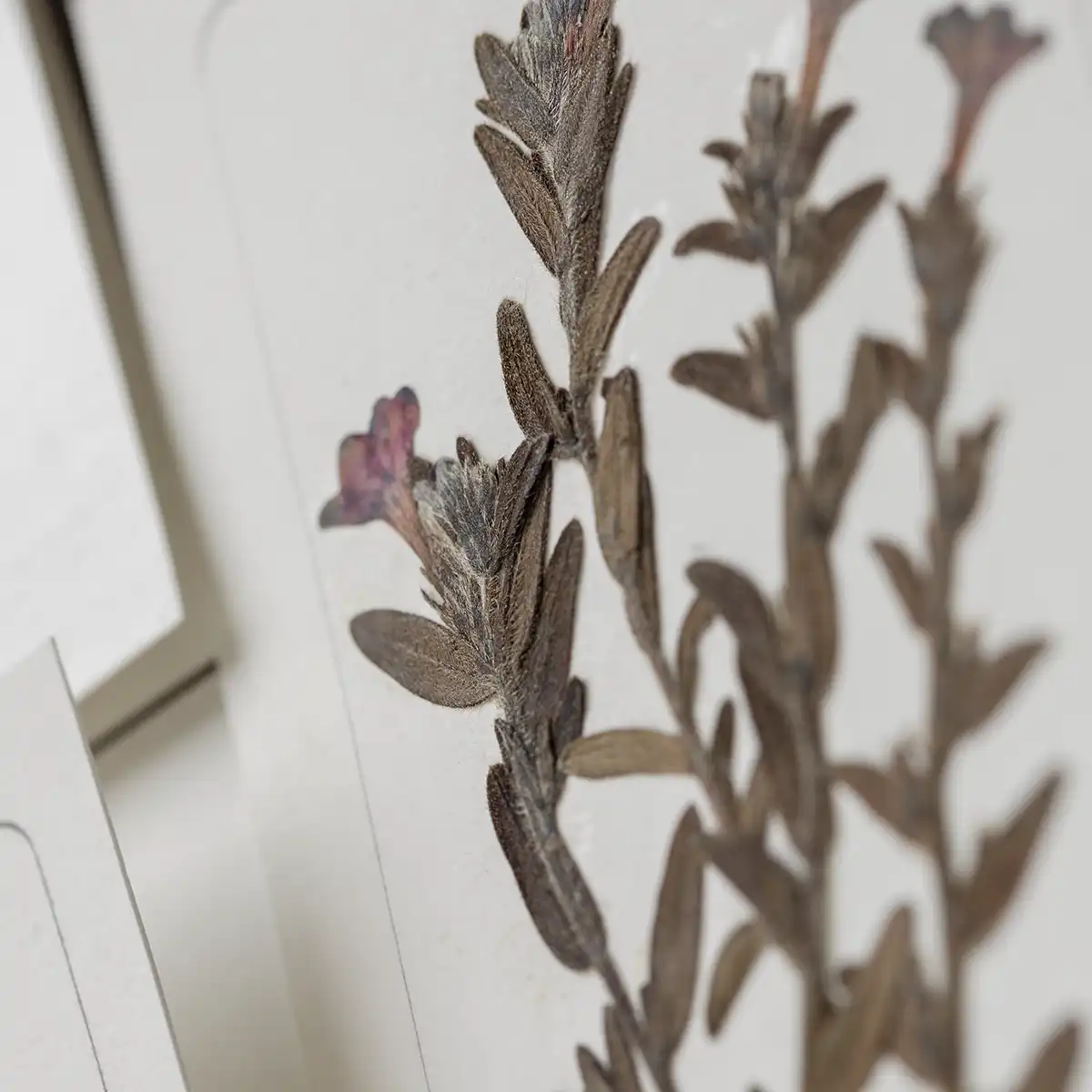 Las flores han sido recolectadas a mano y prensadas durante un mínimo de cuatro semanas, mediante presión continua y papel secante neutro, sin aditivos ni productos químicos.